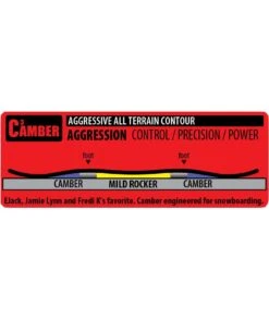 A hybrid rocker/camber flex pattern defined by more tip rocker than tail rocker and camber between the bindings. The rockered tips floats the board’s nose and improves maneuverability while the camber underfoot provides edge hold and response. A slightly rockered tail maintains the power and stability of a traditional board but helps keep the tail catch-free initiating turns and landing switch.