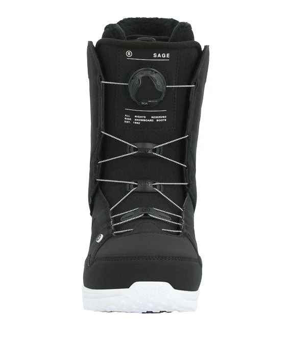 Lace Guide evens the lace tension across the entire boot. C.A.T. technology allows for a custom fit in the calf zone for increased comfort. Lock Down™ Turbo provides secure, no slack liner lace hold. Grip Lite Sole combines +Slime Midsole with rubber pods for durability and traction. The Sage is a medium flexing boot for riders of all ability levels.