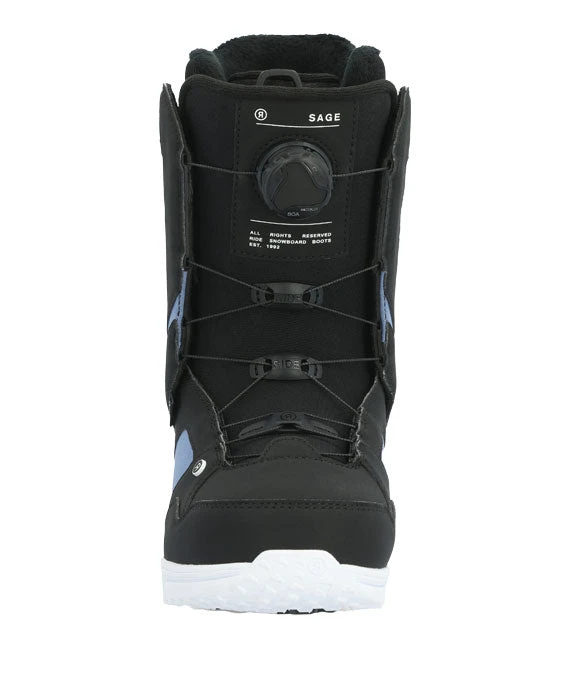 Lace Guide evens the lace tension across the entire boot. C.A.T. technology allows for a custom fit in the calf zone for increased comfort. Lock Down™ Turbo provides secure, no slack liner lace hold. Grip Lite Sole combines +Slime Midsole with rubber pods for durability and traction. The Sage is a medium flexing boot for riders of all ability levels.